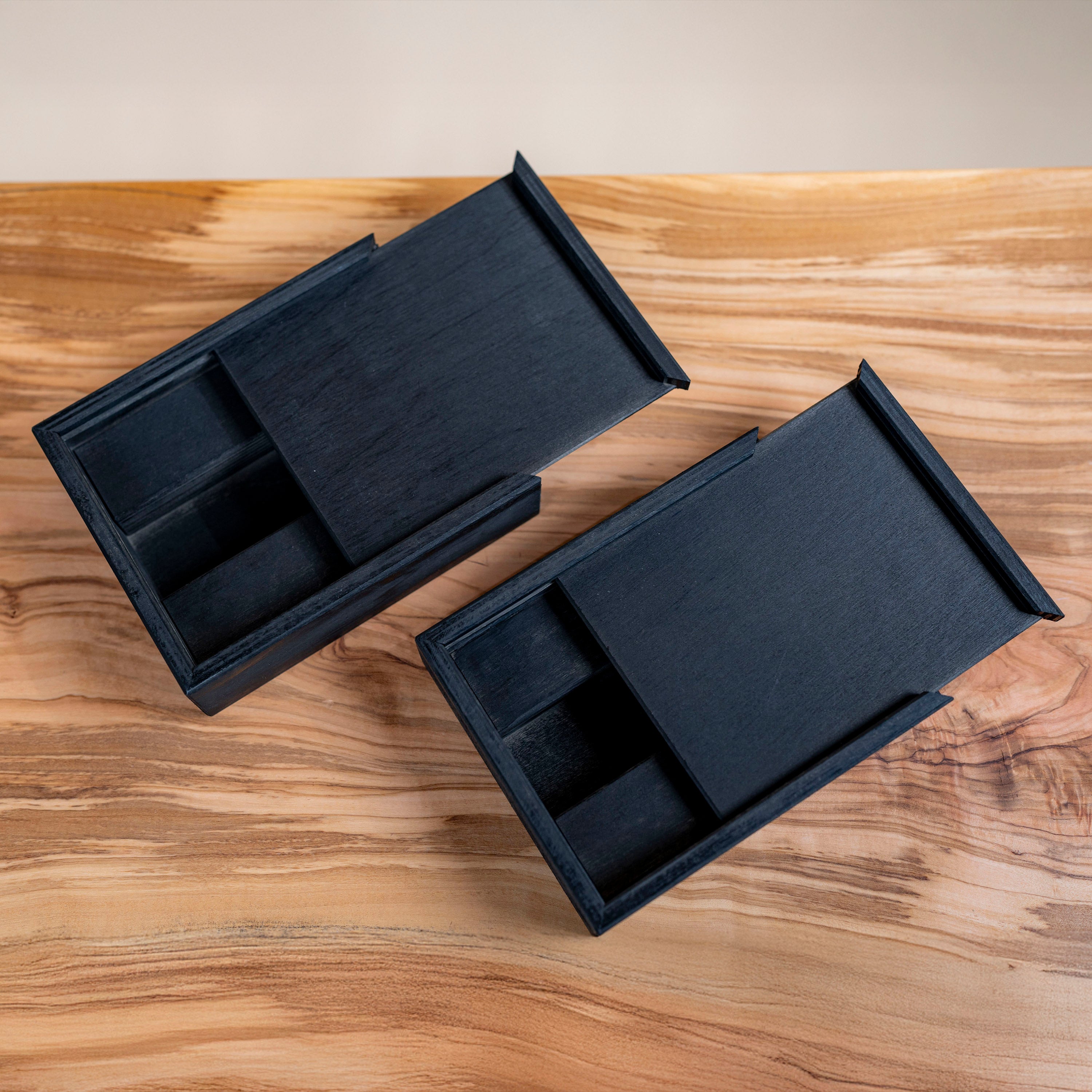 Die USB-Box aus Holz mit Schiebedeckel und USB-Fach ist super für die digitale Bildübergabe auf einem USB-Stick an Deine Kunden. Perfekt geeignet für Videografen und kleine Fotoaufträge.