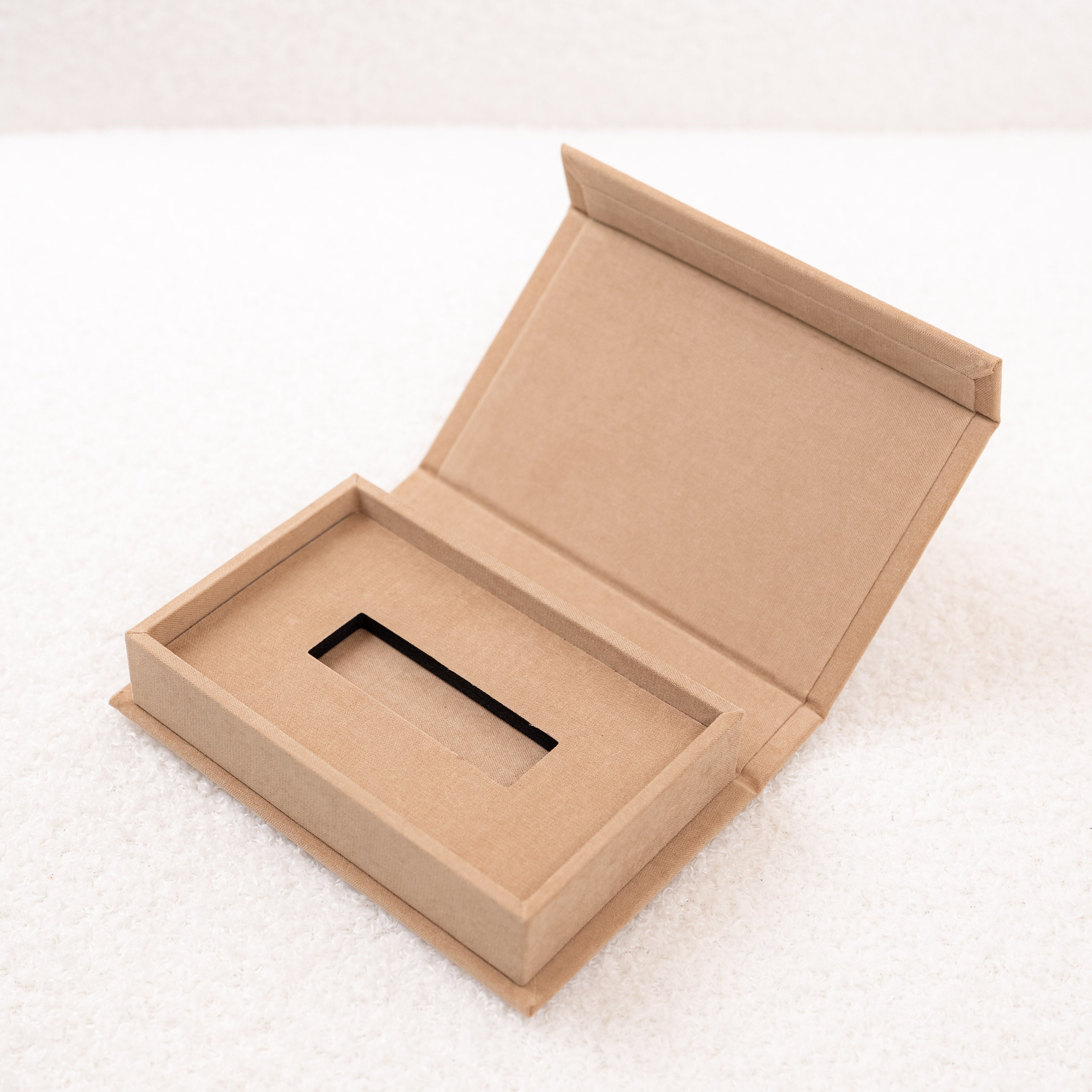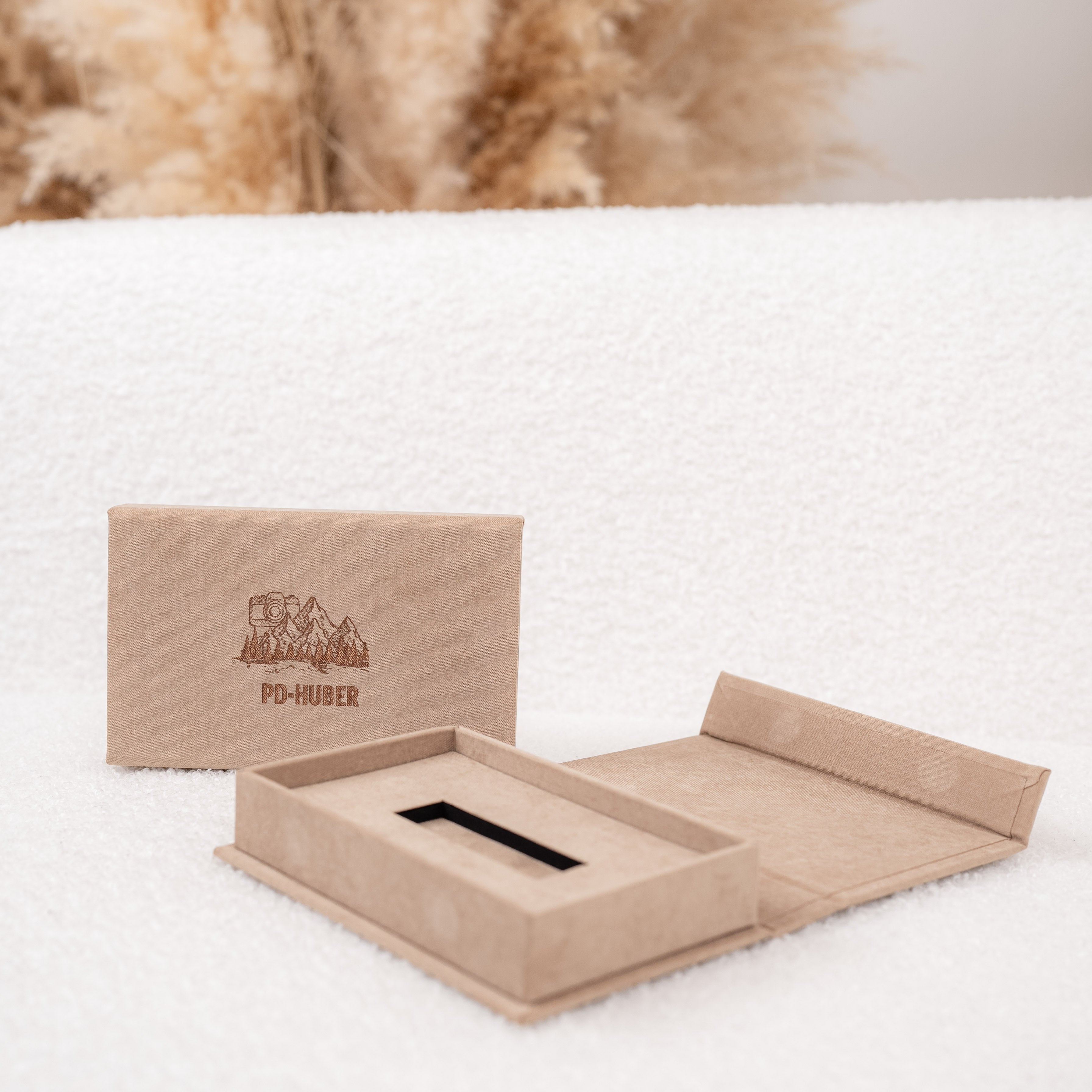 Die weiche, samtige Oberfläche verleiht der Box eine edle Haptik und ein hochwertiges, mattes Finish – perfekt für eine moderne und dennoch zeitlose Präsentation Deiner Arbeiten.